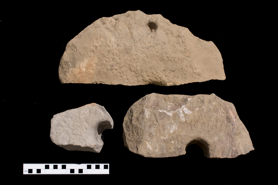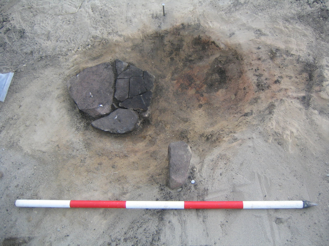 Also associated with this group of features was a ring-ditch enclosing an oval area measuring 5m by 3.5m, possibly representing the foundations of a small structure or shelter. A large assemblage of quern stones, 22 in total, again confirmed that cereal was being processed into flour on site. A horseshoe and worked antler provided evidence for some of the other activity occurring on the site at this time.